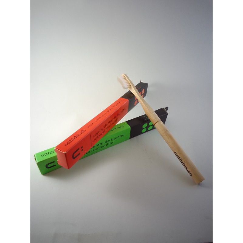 Cepillo dientes bambú con cabezal renovable. Cerdas de dureza media. Elaborado a partir de bambú 100% Moso: ecológico, micótico y antibacteriano.