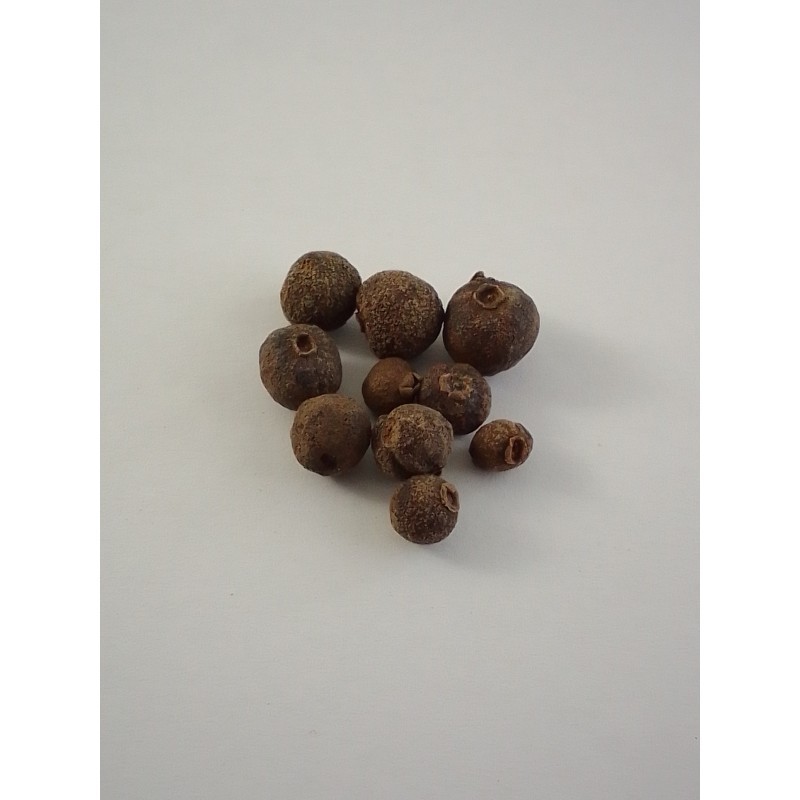 La pimienta de Jamaica (Pimenta dioica) procede de un árbol de hojas verdes brillantes de la familia del mirto.La especia es el fruto inmaduro y desecado del árbol. Los indios mayas de América central la empleaban para embalsamar los cadáveres .En Europa se emplea para conservar las carnes y para sus asados. ALÉRGENOS: Puede contener sesamo, apio, mostaza y frutos cáscara