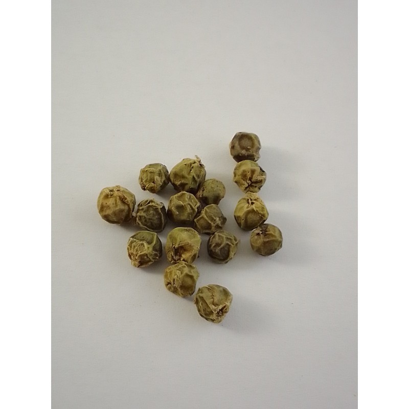 La pimienta verde es el fruto de la planta Piper Nigrum recolectado entre 1 y 2 meses antes de su maduración, siendo sometido posteriormente a desecación.Tienen un sabor fresco, no muy picante, pero aromático, más suave que la pimienta negra y frutal. ALÉRGENOS: Puede contener trazas de apio, mostaza, sesamo y frutos cascara.