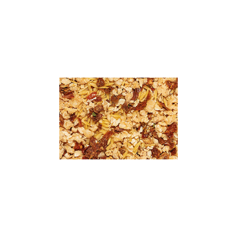 INGREDIENTES: Pasta (sémola de trigo), proteína de guisante texturizada, cebolla, tomate, ajo, pimentón, orégano.