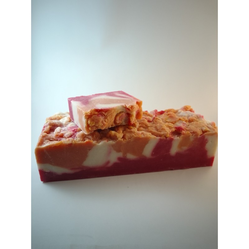 Jabón artesano energizante con aroma tropical. Corte de 130 gr. aprox.