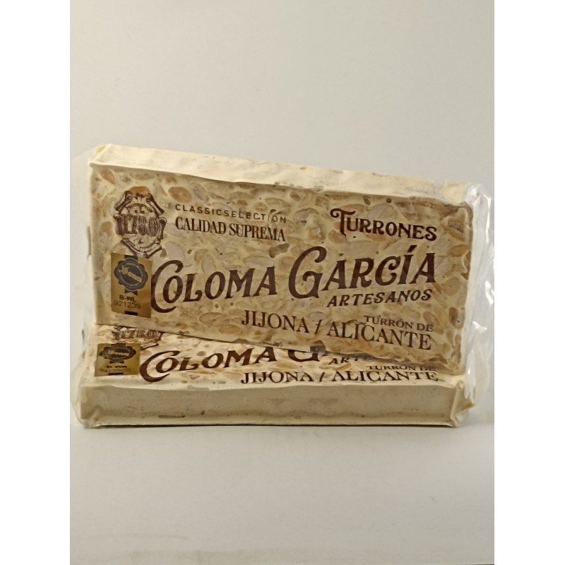 Ingredientes: Almendra tostada (60%), miel de Azahar (12%), azúcar, albúmina de huevo y oblea en superficie (almidón de patata y aceite de girasol). Puede contener trazas de otros frutos de cáscara.